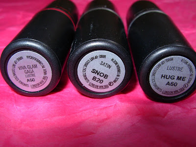 Todos da MAC - Snob, Hug Me e Viva Glam.
